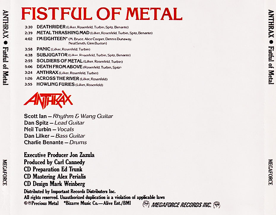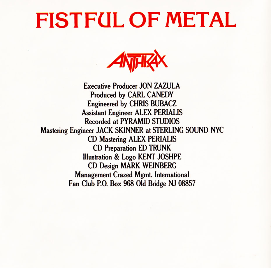 ANTHRAX: FISTFUL OF METAL Album back cover