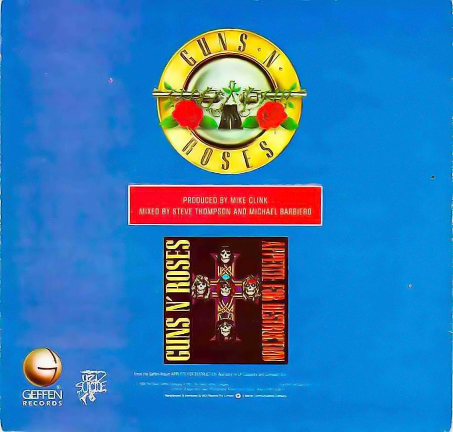 GUNS N’ ROSES: WELCOME TO THE JUNGLE Single Album Back Cover