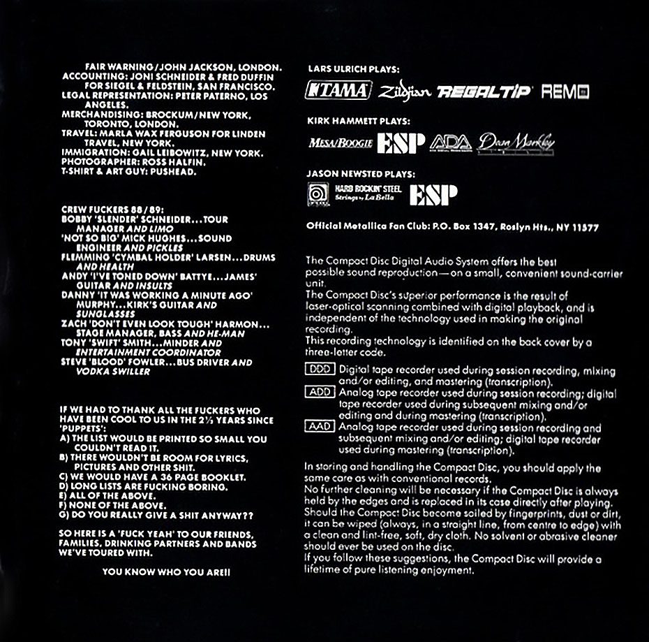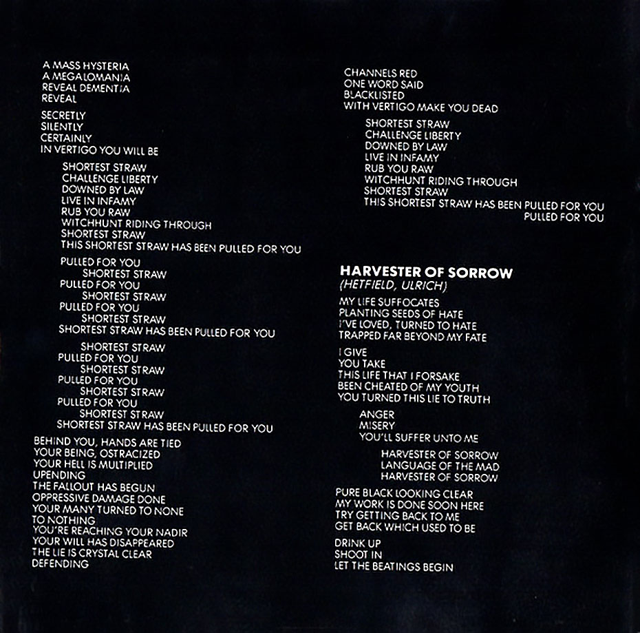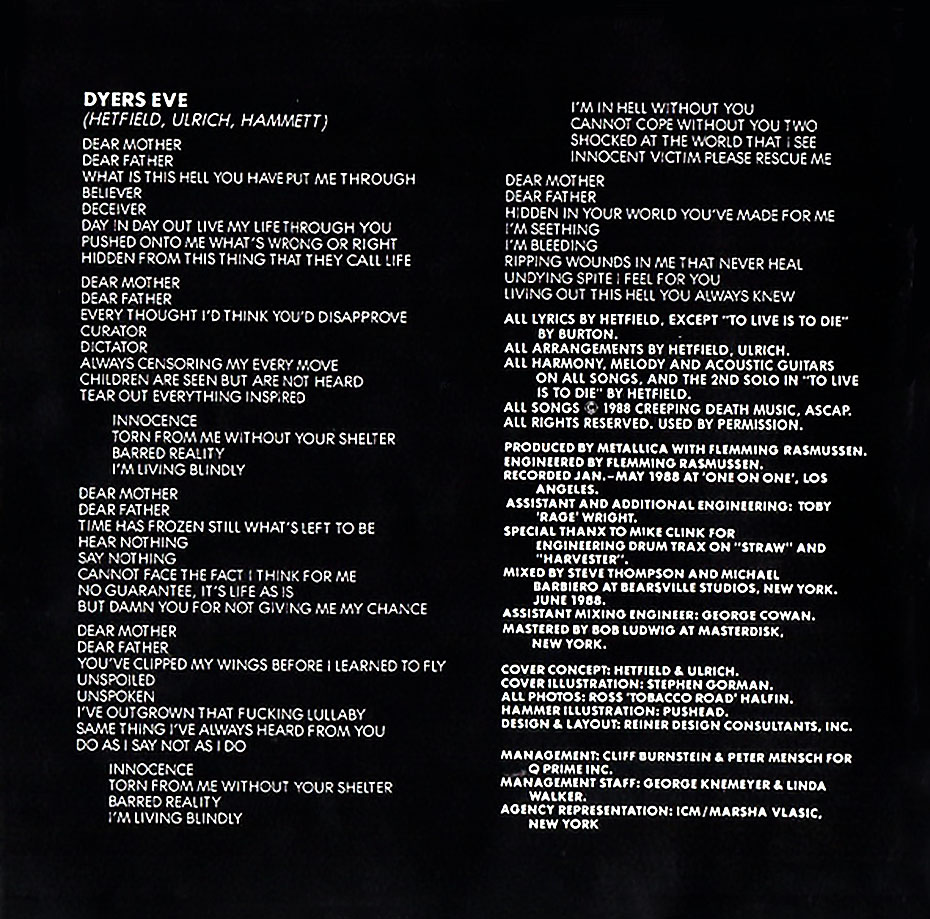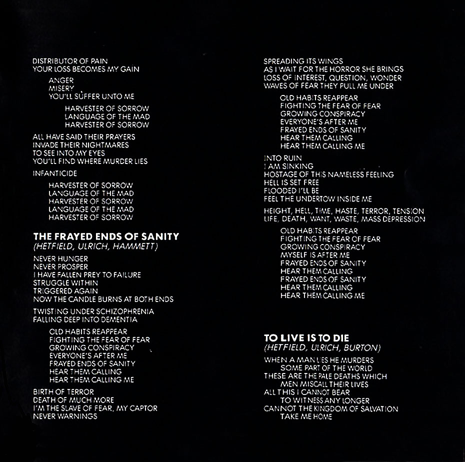 James Hetfield: vocals, rhythm guitar, acoustic guitar, second guitar solo on “To Live is to Die”, production