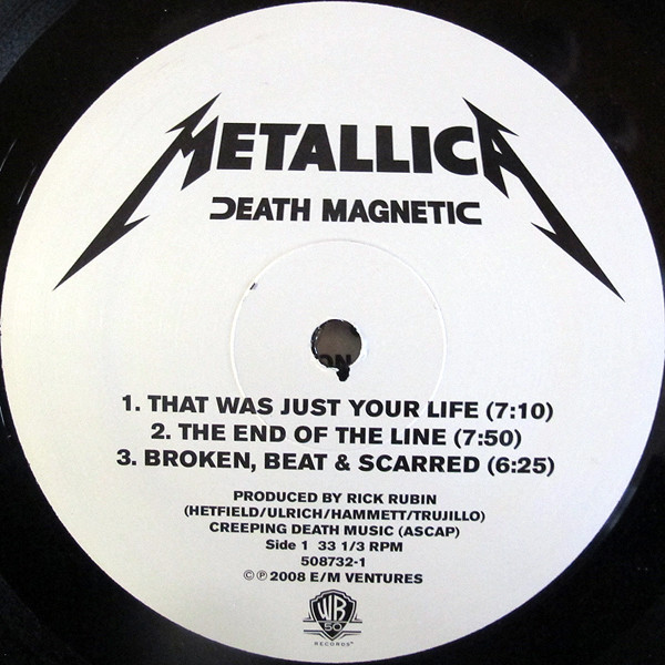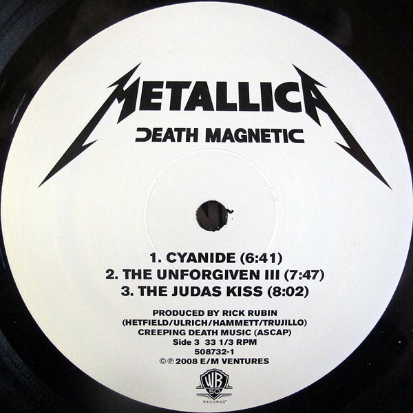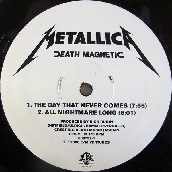 Death Magnetic is the ninth studio album by the heavy metal band Metallica, released on September 12, 2008, through Warner Bros. Records. The album was produced by Rick Rubin, marking the band’s first album since …And Justice for All (1988) not to be produced by longtime collaborator Bob Rock and co-produced by Hetfield and Ulrich. It is also the first Metallica album with bassist Robert Trujillo, and the second to share writing credit to all of the band’s members.