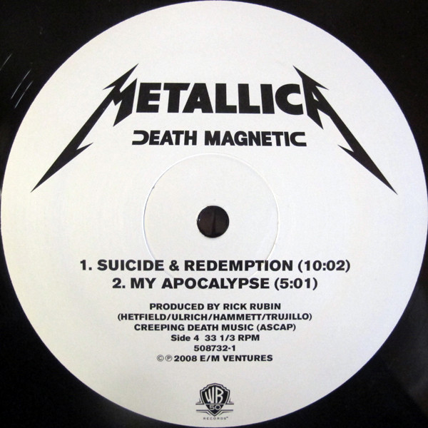 Metallica began writing music for a new album in 2006, later recording the album at different studios across Los Angeles County, California, from March 2007 to May 2008. Musically, Death Magnetic is a radical departure from Metallica‘s previous album, St. Anger (2003), and is considered a return to the band’s thrash metal roots, with more complex compositions, standard guitar tuning on most songs and long guitar solos from Kirk Hammett and James Hetfield. It also includes the band’s first instrumental piece, “Suicide & Redemption”, since “To Live Is to Die” from …And Justice for All.