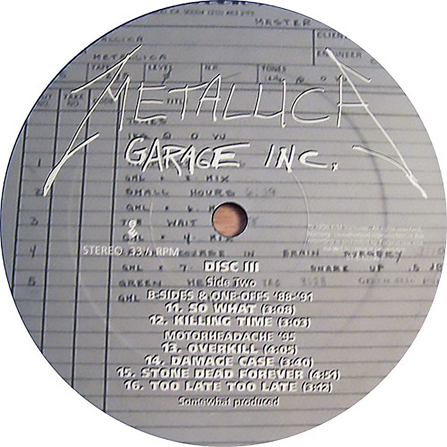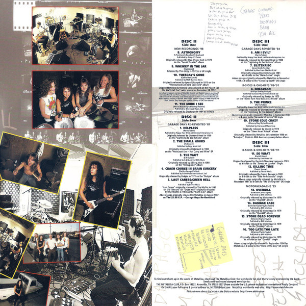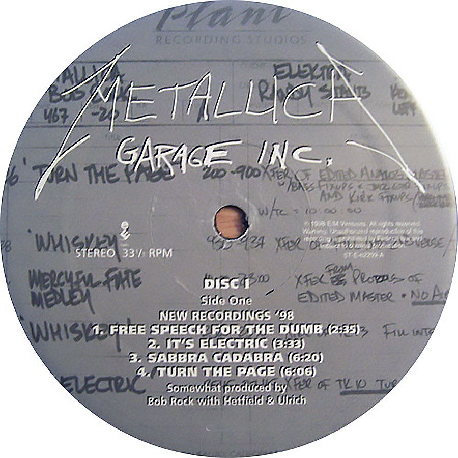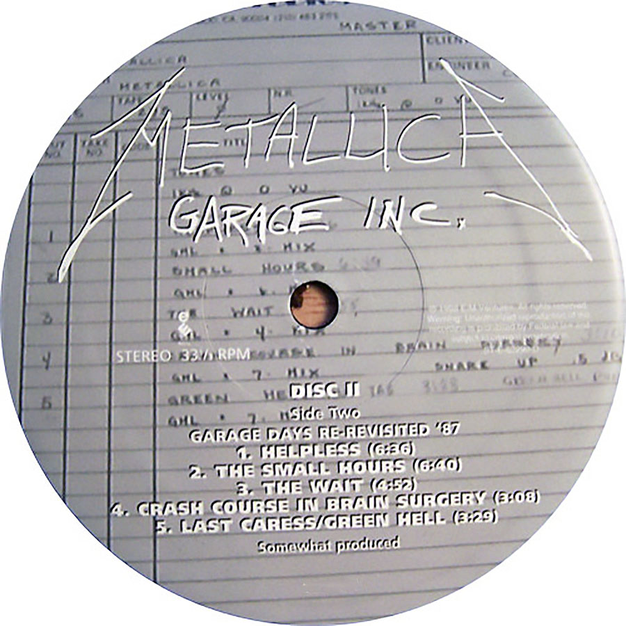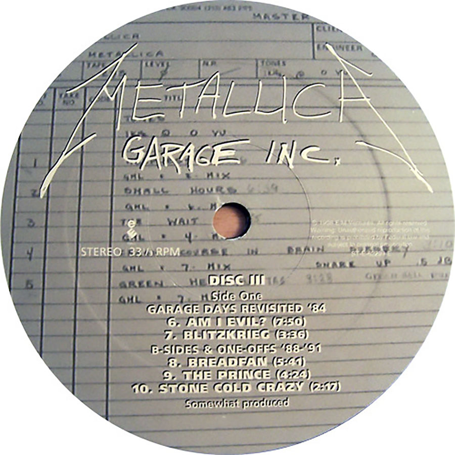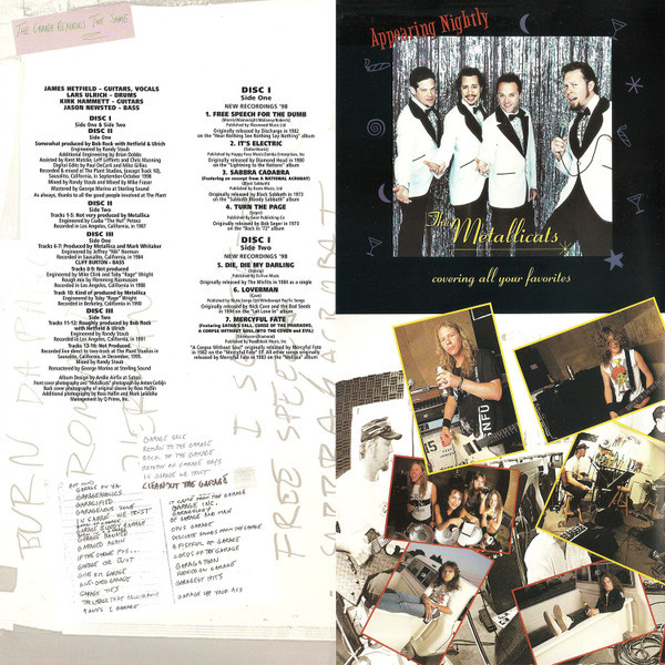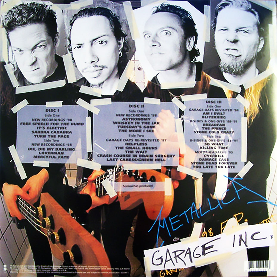 Garage Inc. is a compilation album of cover songs by Metallica, released on November 24, 1998, through Elektra Records. It includes cover songs, B-side covers, and The $5.98 E.P. – Garage Days Re-Revisited, which had gone out of print since its original release in 1987. The title is a combination of Garage Days Revisited and Metallica’s song “Damage, Inc.”, from Master of Puppets. The album’s graphical cover draws heavily from the 1987 EP. The album features songs by artists that have influenced Metallica, including many bands from new wave of British heavy metal, hardcore punk bands and popular songs.