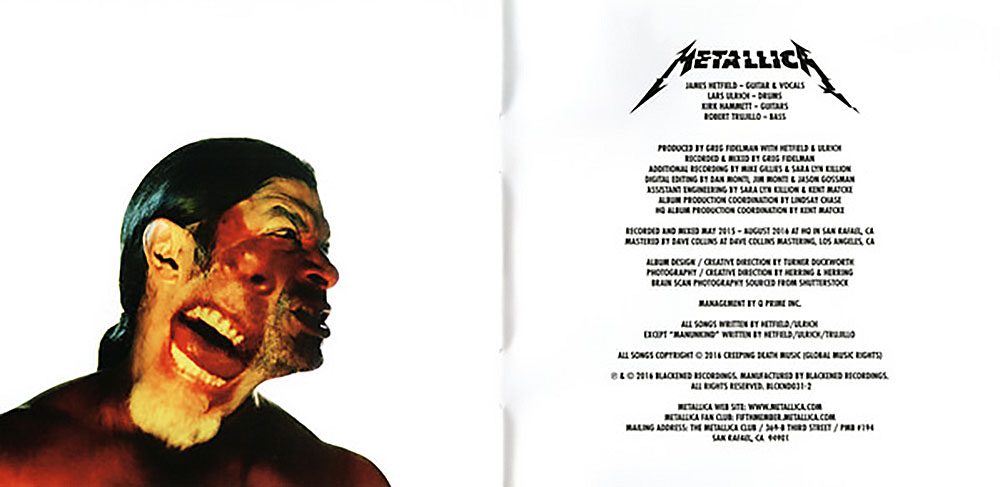 James Hetfield: vocals, rhythm guitar, second guitar solo on “Now That We’re Dead”, production