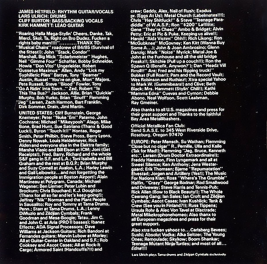 The album is the band’s most recent to date to feature a runtime of under an hour. Instead of releasing a single or video in advance of the album’s release, Metallica embarked on a five-month American tour in support of Ozzy Osbourne. The European leg was canceled after Burton‘s death in September 1986, and the band returned home to audition a new bassist.
