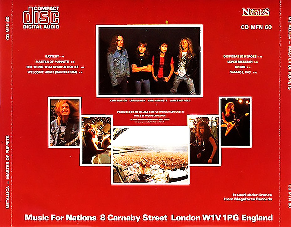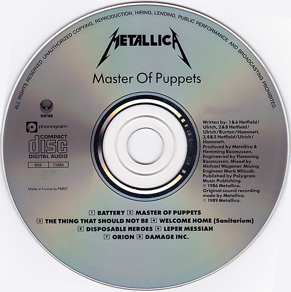 Master of Puppets is the third studio album by Metallica, released on March 3, 1986, by Elektra Records. Recorded in Copenhagen, Denmark, at Sweet Silence Studios with producer Flemming Rasmussen, it was the band’s final album to feature bassist Cliff Burton, who died in a bus accident in Sweden during the album’s promotional tour.