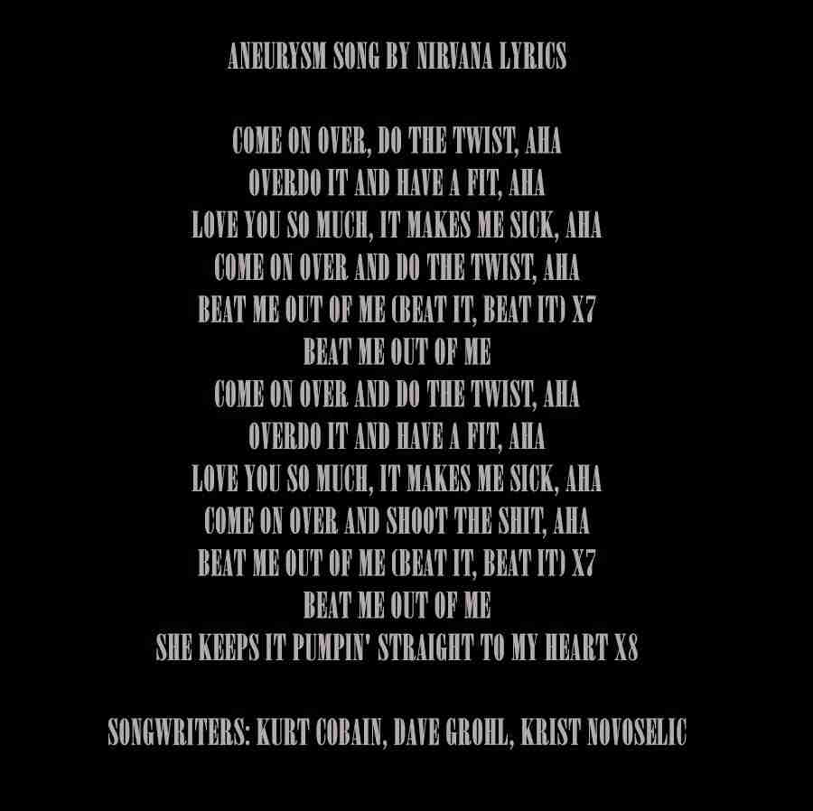 Aneurysm is a song by Nirvana, written by vocalist and guitarist Kurt Cobain, bassist Krist Novoselic, and drummer Dave Grohl. Aneurysm was released as a single on October 8, 1996.