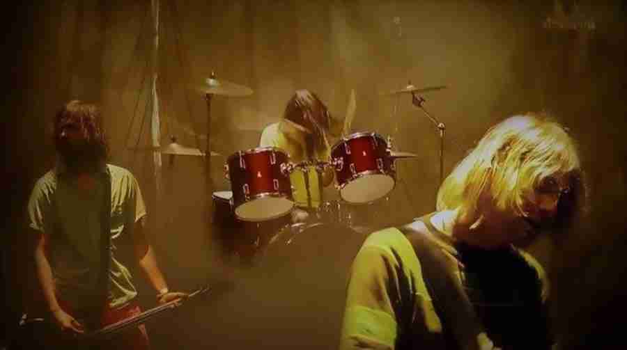 The video was filmed on August 17, 1991, on Stage 6 of GMT Studios in Culver City. It features Nirvana playing at a pep rally in a high school gym to an audience of apathetic students on bleachers, and cheerleaders wearing black dresses with the Circle-A anarchist symbol. The video features an appearance by Burton C. Bell, later known as frontman of heavy metal band Fear Factory. Occasionally, the scene cuts to a janitor (played by Tony De La Rosa) wearing a navy blue jumpsuit and dancing with a push broom handle. The video ends with the students destroying the set and the band’s gear. The discontent was genuine; the extras that filled the bleachers had been forced to stay seated through numerous replays of the song for an entire afternoon of filming. Cobain convinced Bayer to allow the extras to mosh, and the set became a scene of chaos. “Once the kids came out dancing they just said ‘fuck you’, because they were so tired of his shit throughout the day,” Cobain said.