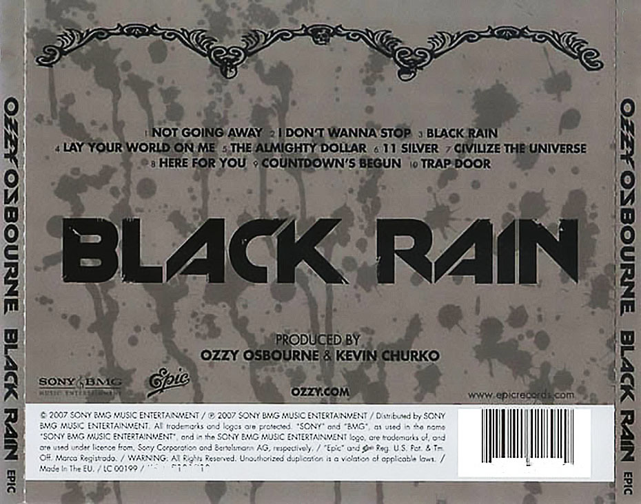 OZZY OSBOURNE: BLACK RAIN Album back cover