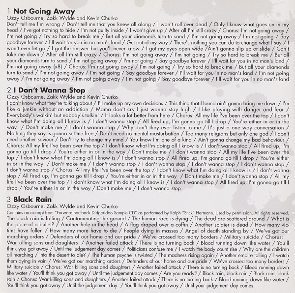 1. Not Going Away (Ozzy Osbourne, Zakk Wylde, Kevin Churko)