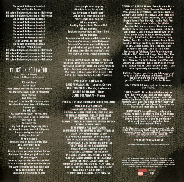 Daron Malakian: vocals, guitars, bass (uncredited)